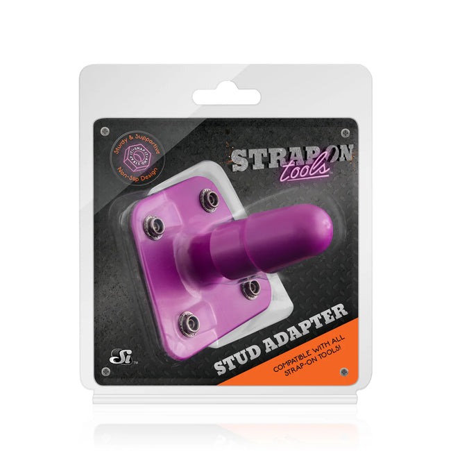 Compatible with vac-u-lock and lock-on systems, this purple stud adapter lets you pair your favorite dildo with a strap-on harness. Adjustable snaps swap out the standard soft base for rigid reinforcement, delivering improved stability and command during use.