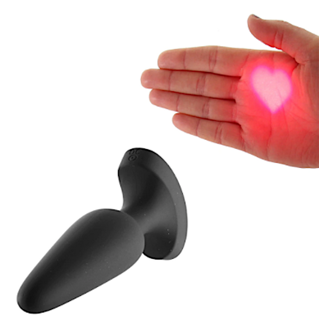 Once the Plug's in place (or if you're in the mood for a  light show!), turn on the namesake Heart laser at the base. It'll shine bright in your hand, on a wall, or on someone's body - please keep it away from your eyes, though. When vibration is activated, the light will flash in synch with whichever vibe mode is being enjoyed.