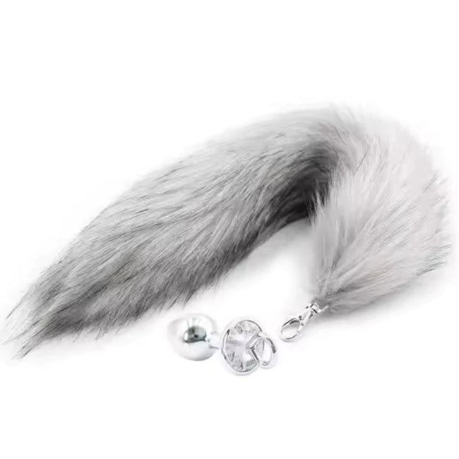 Faux Fox Tail w Detachable Plug - Medium - Grey
