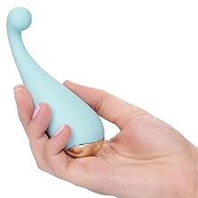 Slip this playful massager into your purse or handbag for satisfying pleasure on the go. The curved tip vibe fits just between your fingers to deliver the ultimate in pinpoint pleasure experience with 10 thrilling functions of vibration