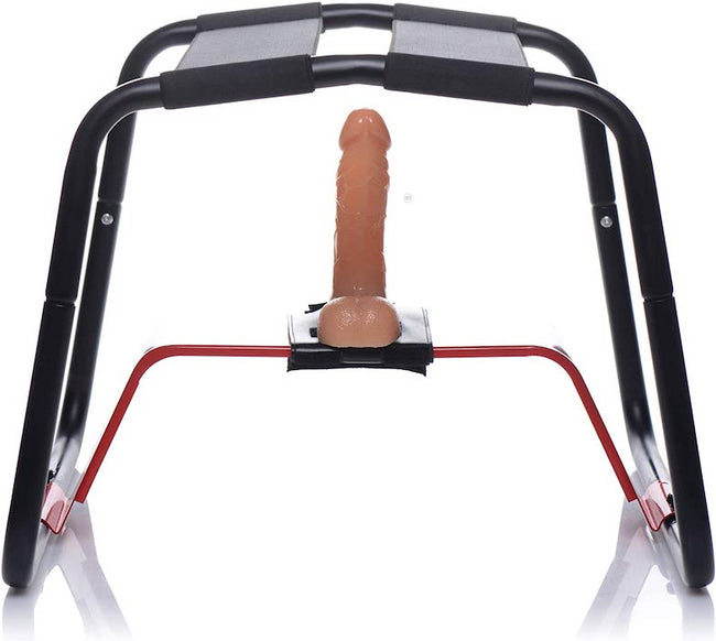 Use the included strap-on harness to secure a dong, or simply attach a suction-cup dildo to the raiser bar. The Bangin Bench is easy to set up and discreet to store, with a durable steel frame that is built to last. Measurements: 14.5-Inch in height, 19-Inch in width, 18-Inch in depth. Material: Metal, ABS plastic.
