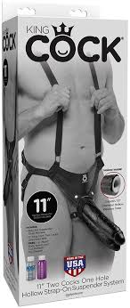 • When size matters and you are looking for a one-of-a-kind hollow-strap-on experience, this Two Cocks One Hole Hollow Strap-On Suspender System from the King Cock Collection by Pipedream satisfies your double dick dreams with one thick dildo sculpted from two lifelike cocks.