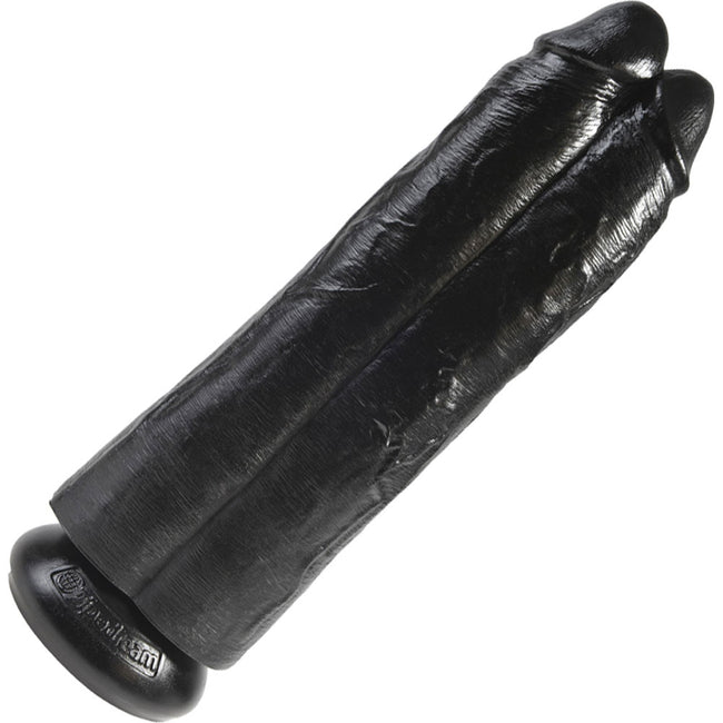 • Extra thick, enormous double cock measures 12" long (30 cm) in full length, is insertable up to 11" and has an incredible 9.75" girth (3.5" diameter) to blow your mind.