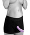 This system beasts a thick, supportive elastic waistband, allowing for greater movement, comfort, and support. With a universal O-ring at the front, this harness can be used with practically any wide-base dildos. The rear straps leave the back open for fun possibilities. Dildo not included.