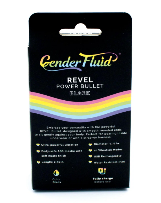 10 Power Vibration Modes, Body Safe ABS Plastic, USB Rechargeable, Sleek Matte Black Finish, Waterproof IPX7. Length 2.55", Diameter .72".