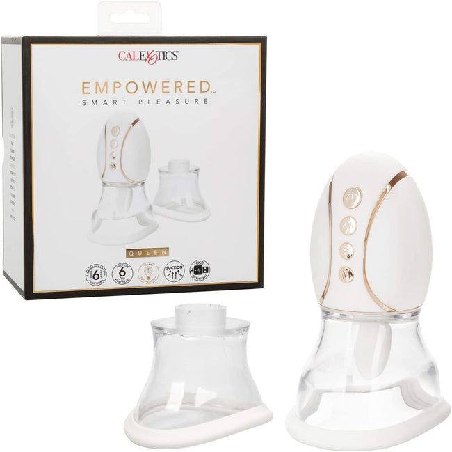 The Empowered™ Smart Pleasure Queen provides 36 mind-blowing combinations of suction, vibration and flickering action. This Queen is smart, allowing you to program your favorite setting. Set the suction pressure you love, and then explore the suction, vibration and licking sensations – all with the pressure you desire. For use on all body types, the Smart Pleasure Queen comes with 2 interchangeable cups - full coverage and demi cup.