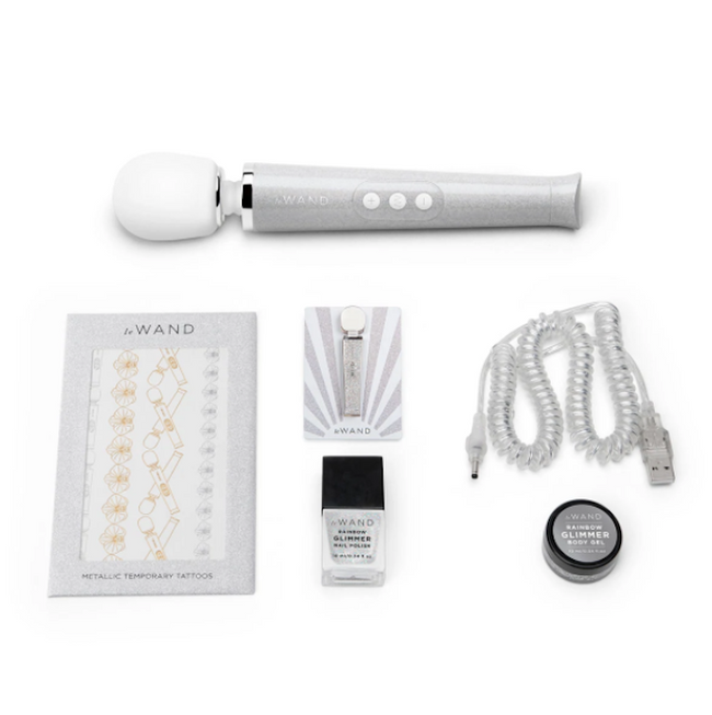 The Le Wand Petite All That Glimmers Special Edition includes the following unique accessories: