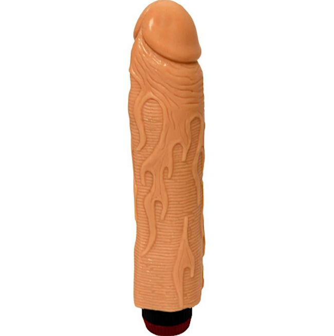 This plus-sized vibrating dildo has an extra-long and extra-thick shaft for a hefty feel that really fills you up and leaves you satisfied. The vibrating dildo features a realistic, penis-shaped tip for a more natural feeling and smoother penetration. The shaft itself is covered with dozens of stimulating grooves and beveled flame details for turbo-charged thrills.