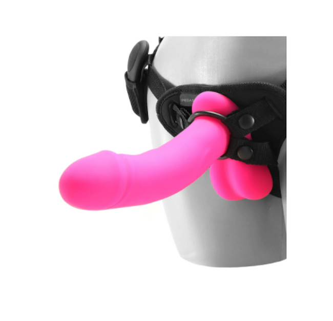 * The Pegasus Realistic 6.5" Ballsy Vibrating Strap-On Set fits up to a 67"170.2cm waist. Included O-ring sizes are 1.25", 1.75" and 2.0"