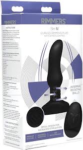 Our curved Model M Rimmer is now available in a slimmer size for those that prefer less girth! Shaped to target the P-spot or, in women, to reach towards the G-spot, this anal massager also features a bulging bulb for your inner pleasure. Better than your average butt plug, this revolutionary sex toy will actually massage the opening to your hole with rotating beads and a spiral texture along its stem, providing a sensation similar to a rim job! Play with 3 speeds and 2 functions of swirling satisfaction around your sphincter. You will also be treated to 3 speeds and 5 patterns of vibration as the plug thrums inside you. An optional remote control can make playing on your own easier, but it can also provide wireless fun with a partner. Light up buttons on the remote and the plug make them easy to see in the dark. Made of premium silicone, this exciting tool is non-porous, phthalate-free, and waterproof for a body-safe experience and thorough sanitization with soap and water. A storage case is included. Measurements: 5.5 inches in total length, 4.6 inches insertable, 1.5 inches in diameter. Remote control is 3.25 inches in length, 1.75 inches in width. Material: Silicone, ABS plastic. Color: Black. Note: Instructions included. Charges magnetically via USB. CR2032 Lithium ion battery cell included for remote control.