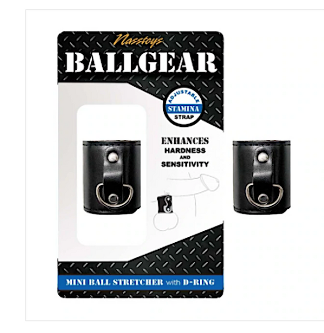 Ballgear D-Ring "Mini" Ball Stretcher by Nasstoys enhances hardness and sensitivity.