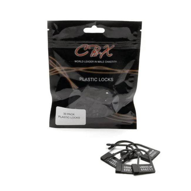 CB-X® Chastity single-use individually numbered plastic locks are available in a 10 or 30-pack. Make travel easy while wearing your chastity device and discreetly pass through TSA, or any metal detector, with these one-time-use plastic locks. These numbered locks work great for business trips, or for the user who prefers a more low-profile and discreet look & feel to their chastity experience. They take the place of the Master Lock on your chastity kit and must be cut off for device removal. Each lock is individually numbered so if you cut it off, you're caught!