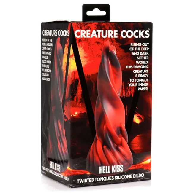 Enhance your fantasy roleplay, kinky cosplay and sensual penetration play with this Twisted Tongues Creature Cocks dildo! From the wide, girthy base two tongues rise up, twisting around each other to form a towering tongue that will soon enter the depths of your holes! The core is firm and bendable and the edges are soft and squishy. Made out of phthalate-free, body-safe, premium silicone, it is silky smooth and slightly tacky. The bold black and red colors add to this demon-themed monster tongue!