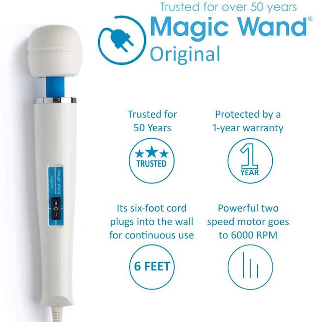 There's absolutely nothing like the real thing, and this fantastically popular, mind-bendingly powerful orgasm machine is where it all began! The "Original" Magic Wand is unquestionably one of, if not the ultimate best-loved vibrator in history, it's been called a marriage saver, is often recommended by sexual health care providers for women who have difficulty climaxing, and, as countless reviews testify, it's quite simply the only vibe you, or you and playmate, will ever need.