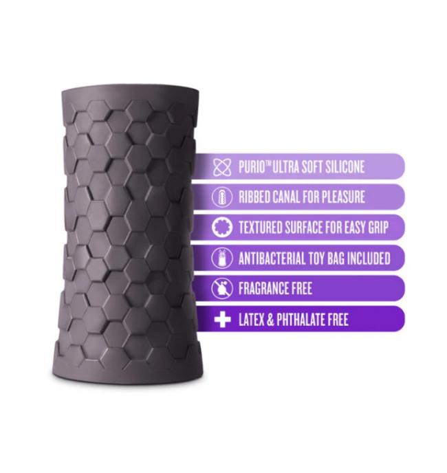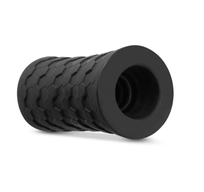 Soft silicone with textured ribs: The M-Elite Hekx is a squeezable penis stroker. Easier to clean than a traditional TPE masturbator, Gript is made of platinum silicone.