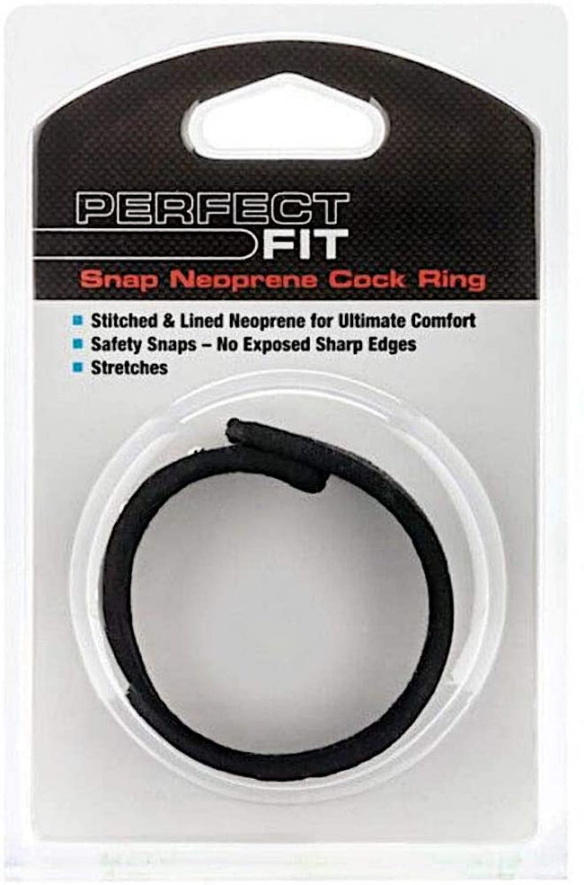 The easy to use Neo Ring is one of the most comfortable cock rings on the market. With four individual snaps you can easily and securely adjust the size of the ring as your penis gets bigger. The snaps are very durable and fit very tight so you don't have to worry that it might come off during sex. The neo Ring has soft stitched edges with no sharp edges and the neoprene material is extremely comfortable with just the right amount of give so it doesn't get too tight.