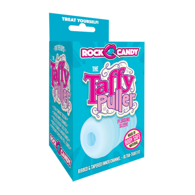 The Taffy Puller is Rock Candy's newest irresistible pleasure toy, specifically created for male sexual stimulation, stamina training, and as a creative treat during partner sex! Engineered with an ultra-realistic, super supple feel, our uniquely-designed men's masturbation sleeve dishes out a multitude of pleasurable sensations with an easy twist of the wrist. Its thick inner texture is just as sweet as the real thing- with five individual, intense pleasure channels, ribbed and tapered from the open-ended top to bottom. The internal design features graduating suction that increases tightness around the shaft of the penis while stroking. The Taffy Puller can also be used a blow job and/or hand job enhancer when incorporated simultaneously. Give yourself (or your partner) an extra snug hug during a good old fashioned rub and tug --and enjoy an even better experience from the very start until sweet, sweet release!
