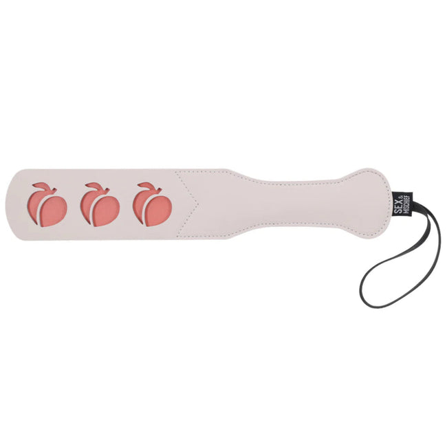 Get ready to add a fruity twist to your playful spanks with the Peaches ‘n CreaMe Peach Paddle! This petite yet powerful paddle is designed for a delightful mix of playful fun and saucy sensations. Crafted with faux leather and adorned with adorable peach-shaped cutouts, it's as charming as it is effective. The split tips offer a satisfying smack, while the peachy cutouts add a touch of whimsy with every swat at your partner’s peach. Perfectly sized for a teasing tap or a firmer spank, the Peaches ‘n CreaMe Peach Paddle is the ultimate accessory for a silly and flirty impact scene!