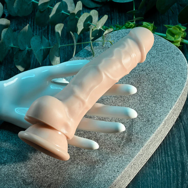 Silky and smooth, this life-like dildo feels exceptionally realistic with well-crafted vein textures, crowned head and balls. Flexible, life-like dildo with suction cup.