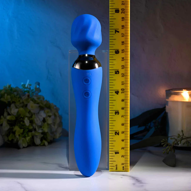 This stylish double-ended toy features a textured, flexible wand head on one end and a gently bulbed vibrator on the other, with two powerful motors controlled independently.