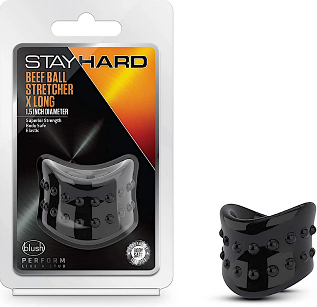 Looking for pleasure and control? Stretch that sack with a soft, yet strong and pliable Beef Ball Stretcher. Elongate your scrotum as you feel your balls pulled during partner play or solo play. For more extreme play, stack two Beef Ball Stretchers together! Made of body safe, phthalate-free TPE.
