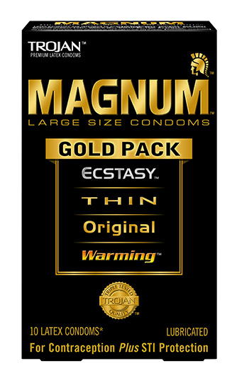 MAGNUM™ Gold Collection Lubricated Condoms. Four large-size MAGNUM™ condom varieties in one convenient package: