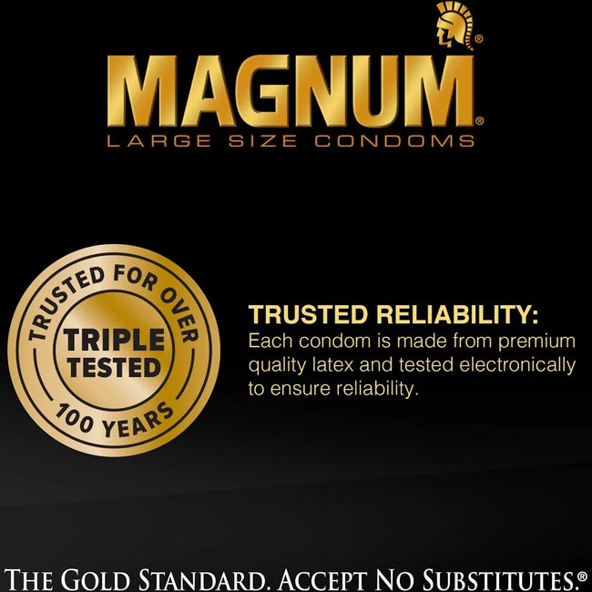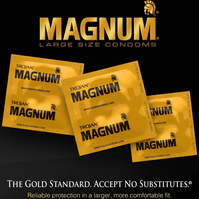MAGNUM™ Lubricated Condoms are intended for men who feel that current regular size condoms are too small. MAGNUM™ is Larger than standard latex condoms for extra comfort. The gold standard in comfort and protection.